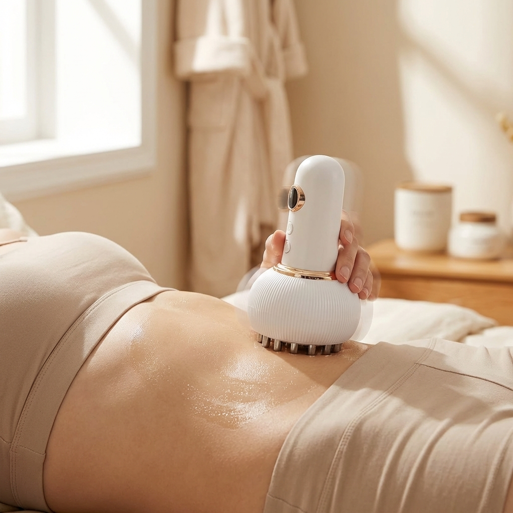 Most women notice reduced bloating and a flatter-looking midsection within the first 3–5 sessions. For more significant sculpting and skin tightening, consistent use over 3–4 weeks delivers the best results. Use it 3–5 times per week for 10 minutes per session.