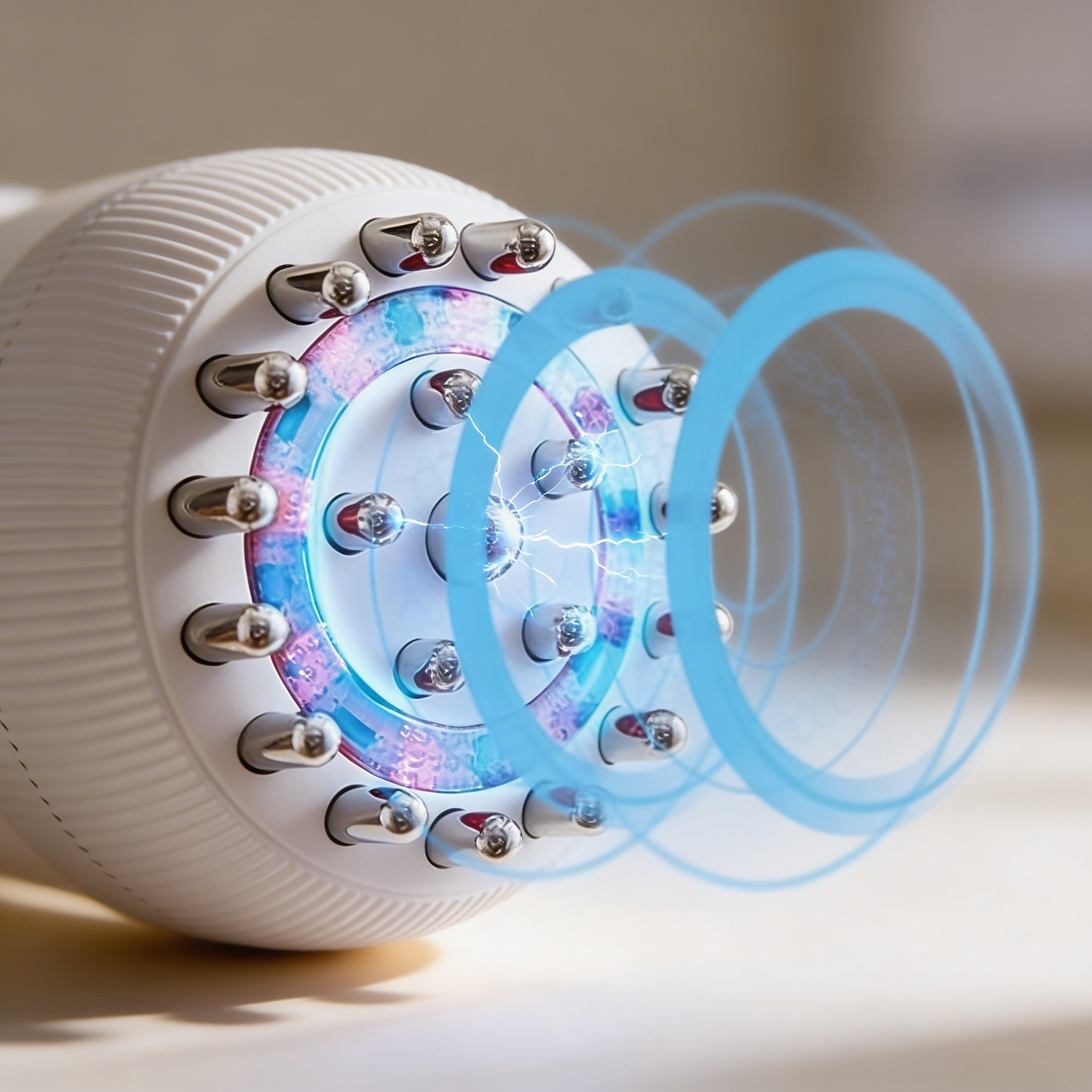 Low-level bioelectric pulses stimulate deeper tissue layers, targeting stubborn fat deposits and cellulite while firming skin from within.